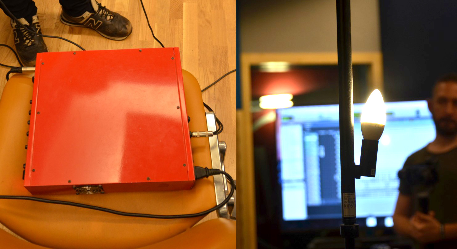 Sempre per l’ambiente, non avendo trovato nel vicino mercatino nessun dittafono (memorie dello scorso millennio) con il loro caratteristico suono iper-compresso dovuto alla circuitazione ALC, sono stati utilizzati i prototipi dei microfoni Periscope nati dalla collaborazione fra Mattia Sartori, Tommaso Colliva e Paavo Kurkela: questa soluzione si è subito rivelata eccellente, tanto da essere adottata anche sulla cordiera del piano.
