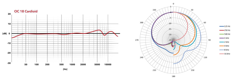 Per quanto riguarda il suono, il microfono è abbastanza lineare, con un lieve calo di un decibel intorno ai 500 Hz e una spinta di quasi 3 decibel sui 7000 Hz.