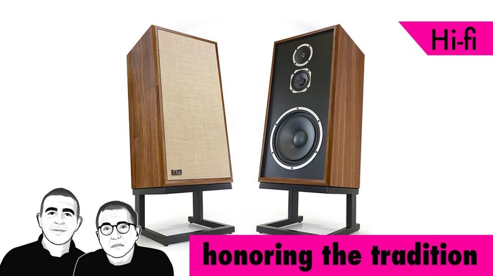Diffusore da pavimento tre vie a sospensione acustica con woofer da 10", suono naturale e controllo, estetica vintage e tecnologia moderna.