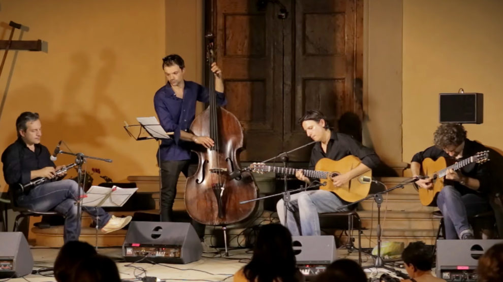 Una formazione particolare ma dal risultato musicale assolutamente suggestivo quella che andiamo ad ascoltare nella performance dal vivo in copertina.