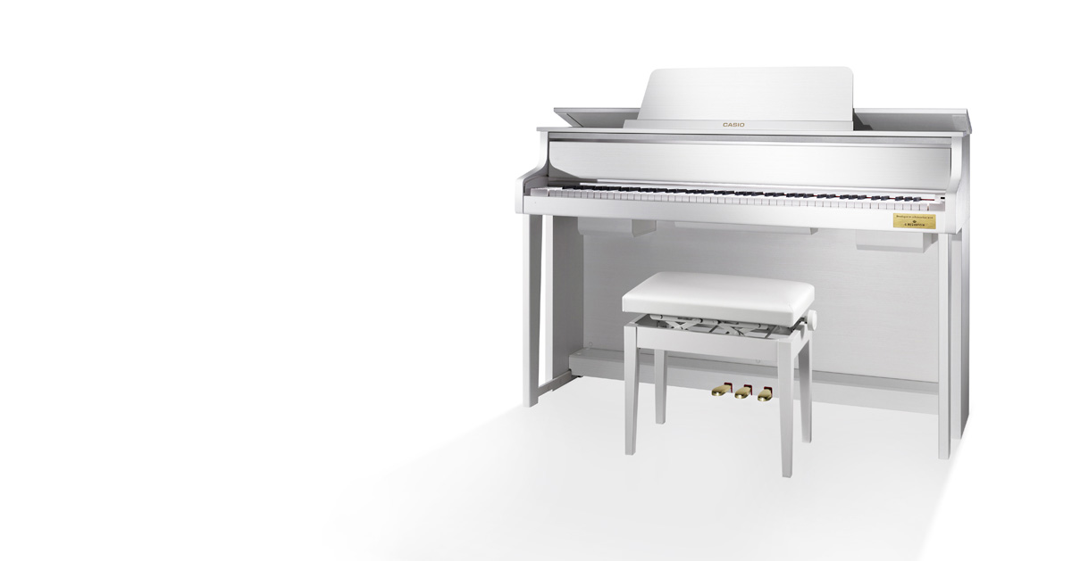 Arriva un nuovo modello nella fortunata gamma Celviano Grand Hybrid di Casio, si tratta del GP-300WE che porta con sé un nuovo ed elegante design con una bellissima finitura in legno bianco naturale per corpo e supporto.