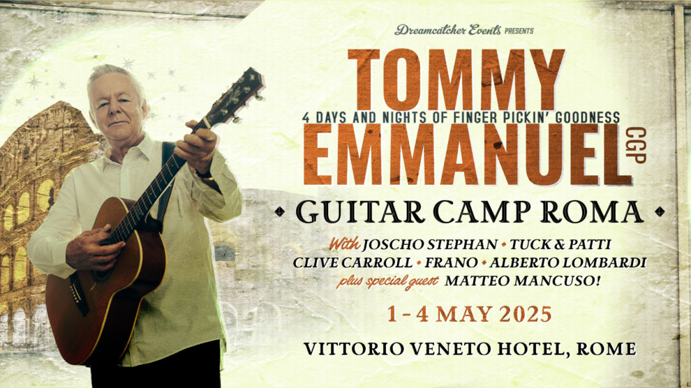 Dal 1 al 4 maggio 2025, Roma diventerà il palcoscenico per uno degli eventi più attesi dagli amanti della chitarra acustica: il Tommy Emmanuel Guitar Camp.