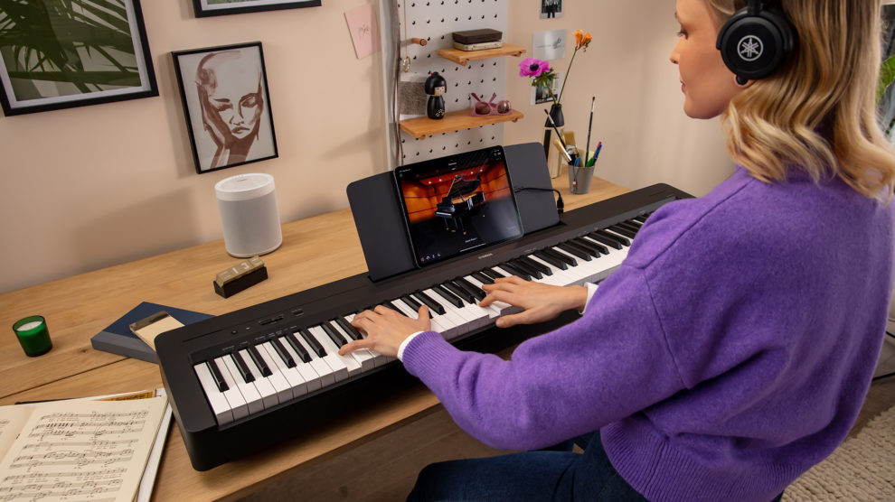 Yamaha P-145: pianoforte digitale compatto, suono ricco, tastiera realistica, connessione intelligente, portatile e versatile.