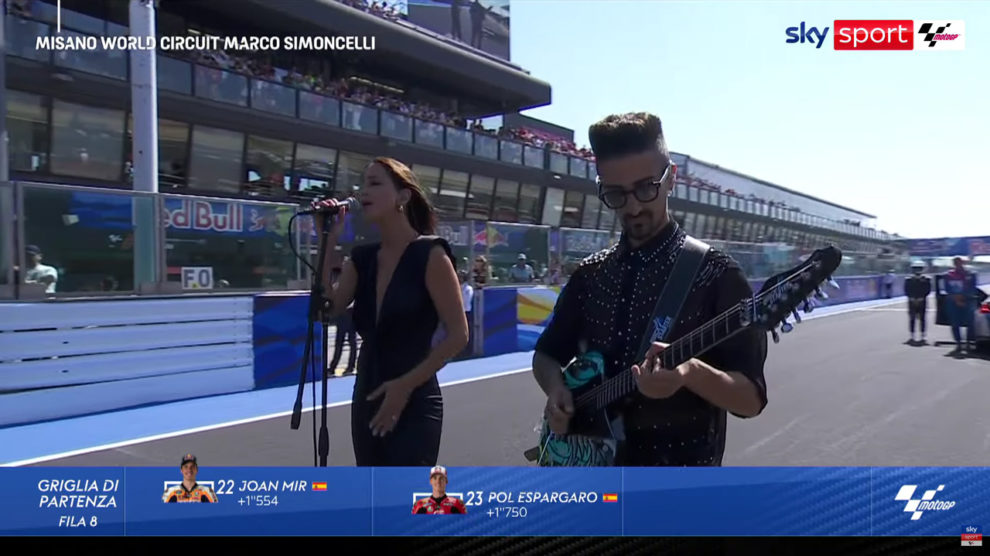 Per la seconda volta Giulio Maceroni porta la sua "chitarra-casco" in diretta mondiale per l'inno durante la gara di Moto GP.