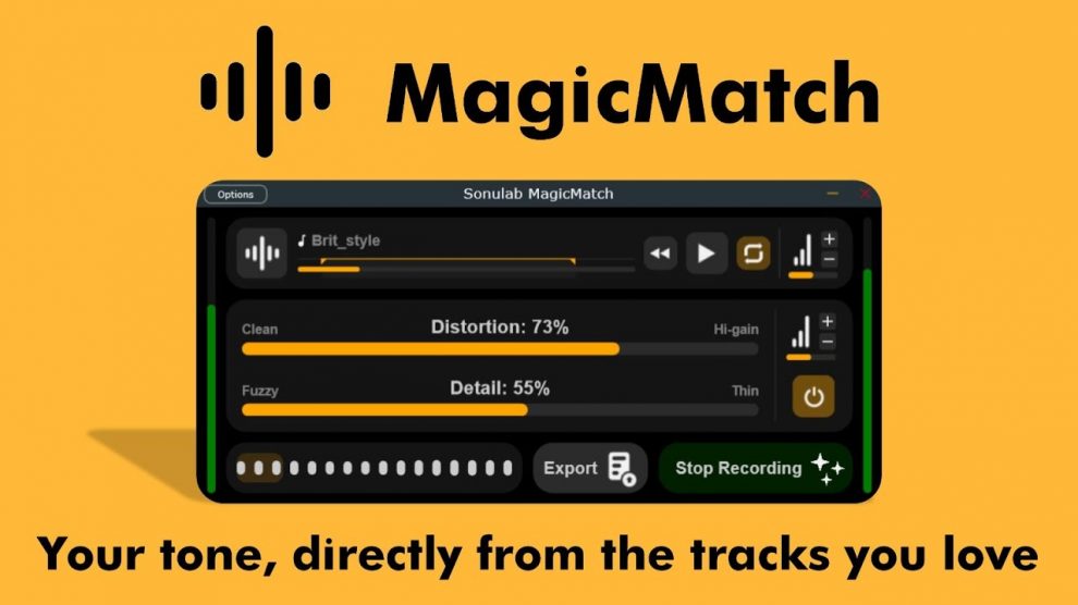 È disponibile MagicMatch, un software in versione Beta sviluppato da Sonulab, pensato per i chitarristi desiderosi di riprodurre alla perfezione il sound dei loro brani preferiti, solo con una traccia di riferimento.