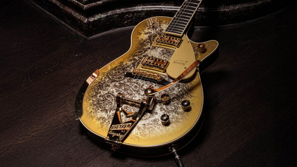 Gretsch presenta due edizioni limitate dorate: la lussuosa Paisley Penguin e la resonator Honey Dipper Special in Bell Bronze.
