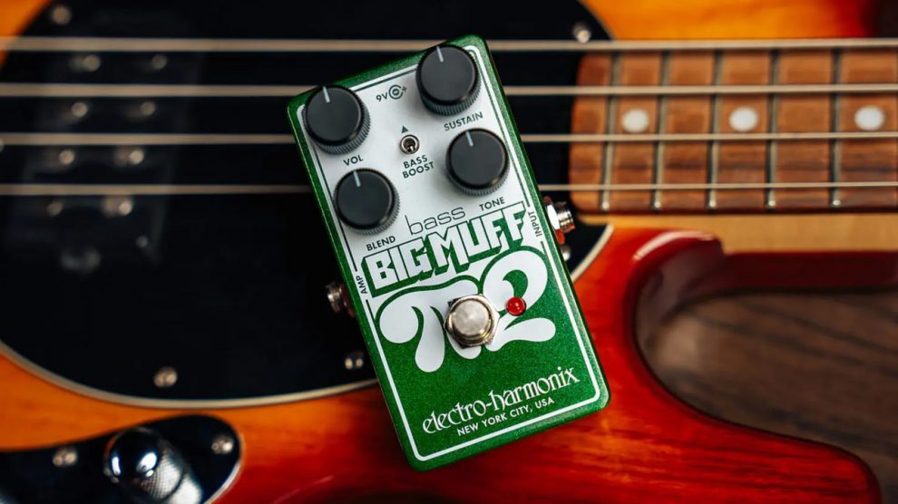 Electro-Harmonix Bass Big Muff Pi 2: il fuzz anni '70 dual op-amp per bassi potenti e definiti, con blend e boost dedicati.