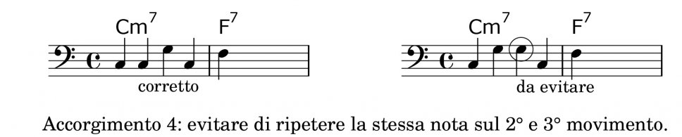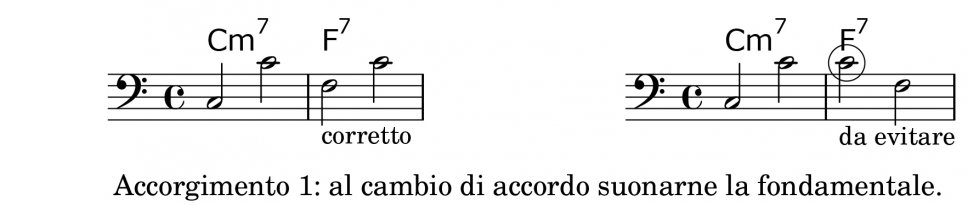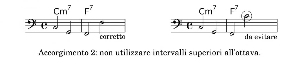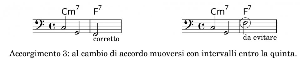 • al cambio di accordo muoversi verso la nuova fondamentale con un intervallo non superiore alla 5a.