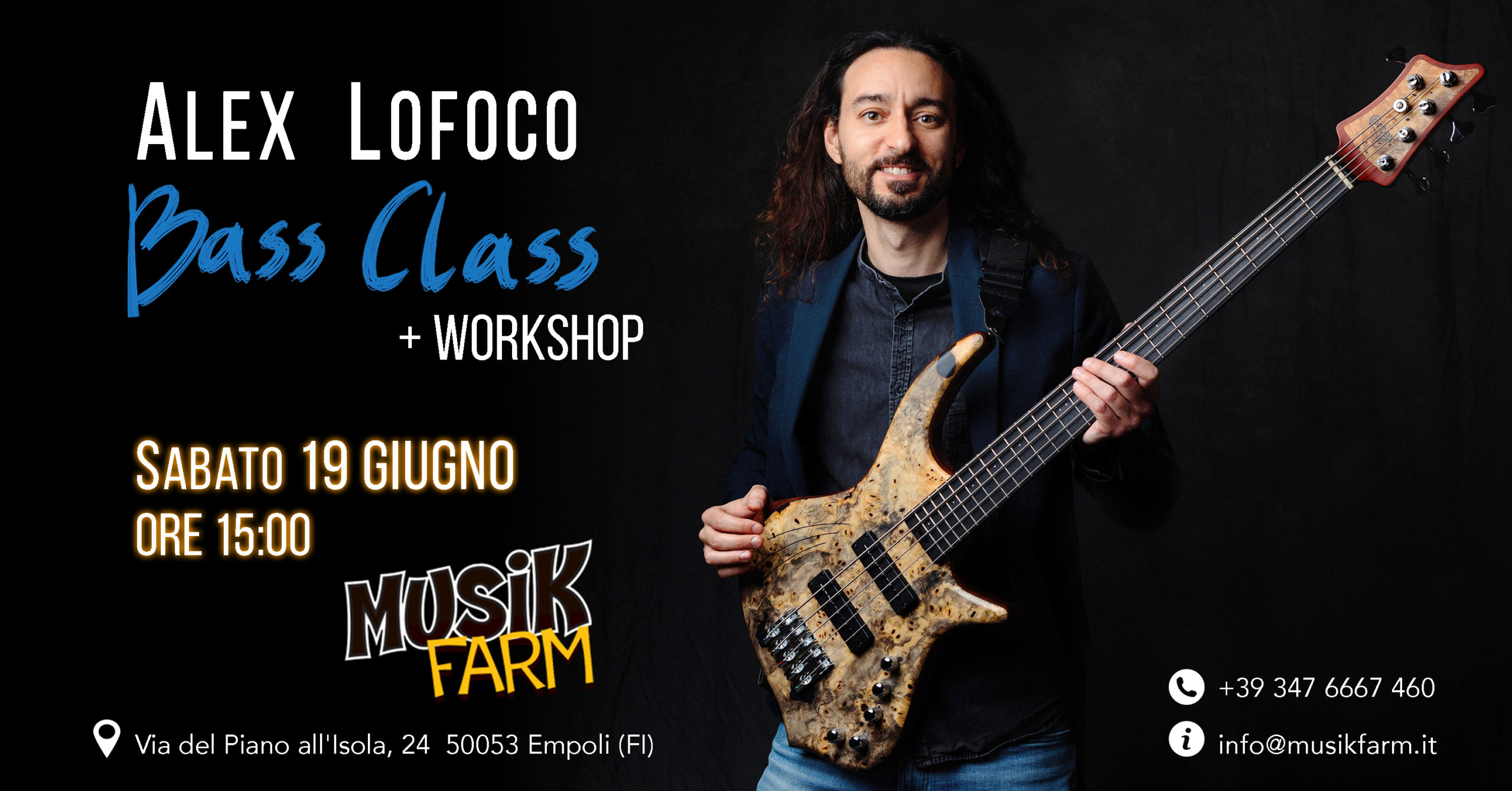 Il 19 giugno ad Empoli, al centro della regione Toscana e ben raggiungibile sia in treno che in auto o altro grazie alle principali linee di trasporto, vi aspetta un doppio appuntamento dedicato alla didattica per basso con la Bass Class di Alex Lofoco.