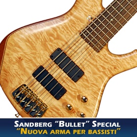 Ancora una volta la Basszone, questa giovane e dinamica azienda, ci offre un prodotto da testare; un prodotto di una casa ancora poco conosciuta in Italia, ma che a detta di molti avrà notevole successo come ha già avuto nel resto d’Europa. APRIAMO LA CUSTODIA La custodia… appunto, siamo già davanti ad una nota dolente, in quanto essa è veramente al di sotto di ciò che si prospetta essere lo strumento, in quanto è una di quelle custodie morbide che probabilmente viene subito rimpiazzata dall’acquirente. E allora imbracciamo lo strumento! IL BASSO A prima vista notiamo che la fattura generale è veramente eccellente, il modello in questione è il top della serie Bullet, lo SPECIAL. Dalle note vediamo che ha un body in mogano con top in rarewood, manico bolt-on in acero e tastiera in palissandro a 24 tasti con diapason di 34″.