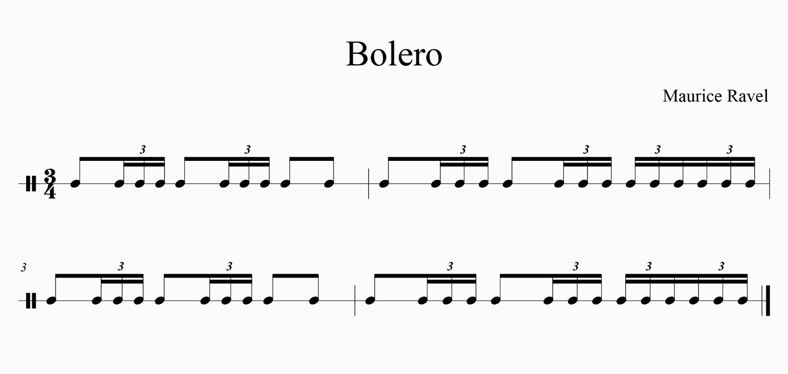 Per capire quant’è fondamentale il ruolo della dinamica nella musica prendiamo come esempio il “Bolero” di Maurice Ravel. Nel Bolero, il tamburo esegue due misure di ostinato (per l’esattezza 169 battute) partendo da pianissimo a fortissimo e tutto ruota intorno a questo gioco dinamico.