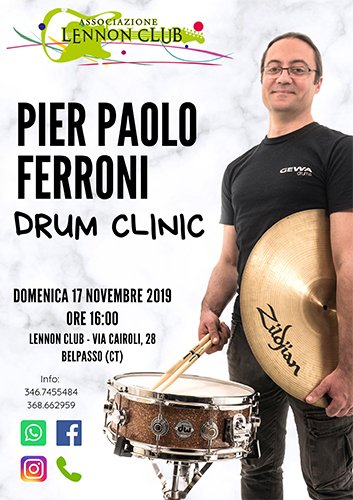 Domenica 17 alle 16:00 presso il Lennon Club di via Cairoli 28 a Belpasso, Catania, drum clinic con il grande Pier Paolo Ferroni, per avere un’interpretazione autentica del metodo didattico di mr. Gary Chaffee.