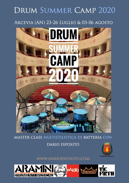 Dopo il successo degli scorsi sei anni, si replica anche quest’estate il Drum Summer Camp di Dario Esposito, nella cornice di un teatro antico di grande prestigio, nella splendida cittadina medioevale di ARCEVIA (AN). Il corso è aperto a batteristi di ogni livello ed età, da chi vuole un primo approccio e non ha mai suonato la batteria, allo studente avanzato che vuole un approfondimento e una specializzazione con un programma davvero completo e stimolante.
