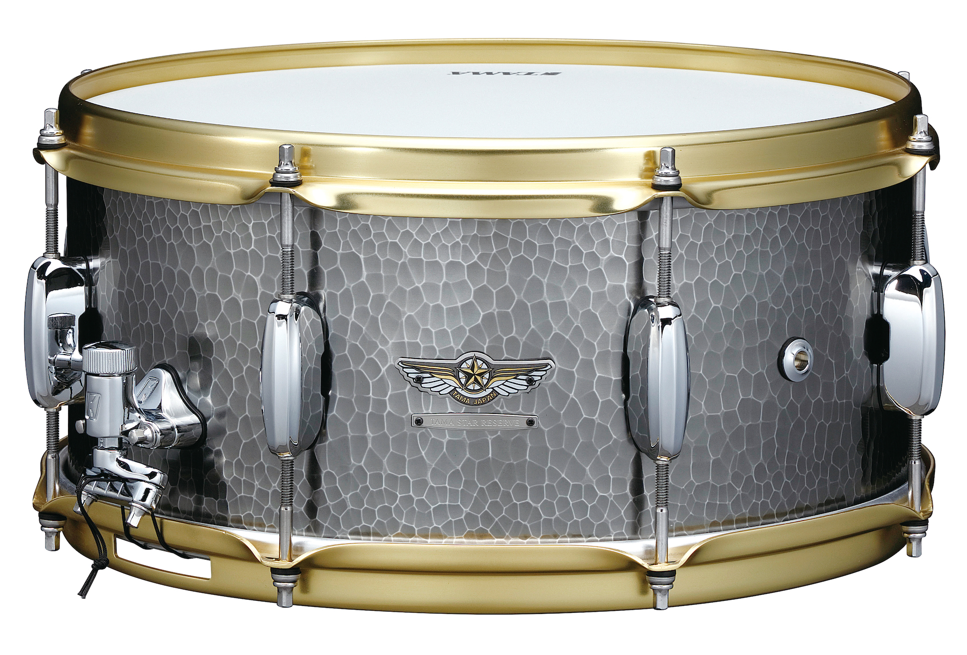Ai rullanti della serie Star Reserve si aggiunge il modello Hand Hammered Aluminum. Incoraggiati dal successo degli analoghi modelli in rame e bronzo, il personale Tama si è cimentato con un fusto spesso 3 mm di alluminio, dalle misure di 14 pollici per 6,5, passato attraverso due fasi di martellatura manuale e per questo ricco di frequenze basse, ma anche dotato di grande proiezione ed estremamente versatile quanto a possibilità di accordatura.