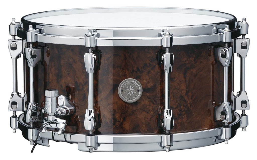 Sette strati di noce americano dallo spessore complessivo di 6 mm per il nuovo Starphonic Walnut Snare Drum da 14 per 7 pollici, particolarmente versato nelle frequenze medio-basse, anche grazie ai cerchi grooved hoops, e decisamente elegante grazie al suo strato esterno in finitura laccata American Walnut Burl e ai tiranti a tutto fusto Freedom.