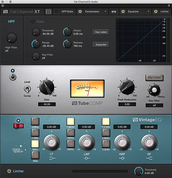 Per chi invece ha acquistato il pacchetto di compressori ed EQ di Studio One è sufficiente utilizzare questi nella Fat channel XT, che riesce a rivaleggiare molto bene, soprattutto con i pacchetti aggiuntivi contro MetricHalo Channelstrip.