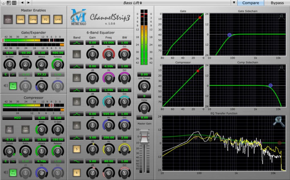 Partiamo appunto dai più vecchi, ossia quelli che stoicamente resistono nel mio workflow da anni e che difficilmente troverò modo di sostituire, stiamo parlando di Metric Halo Channelstrip, che sarò presto costretto a lasciare se non penseranno ad un aggiornamento: ho notato infatti un difetto sull’export delle song a 96khz.
