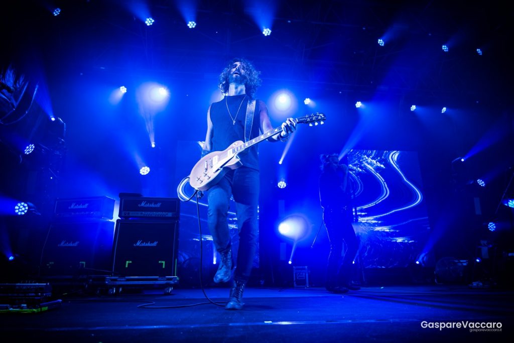 Tra i pedali utilizzati, troviamo modulazioni, un POG, chorus, tremolo e un boost integrato per garantire una gestione fluida dei suoni solistici. L’approccio è da vero nerd della chitarra, ma sempre funzionale al live.