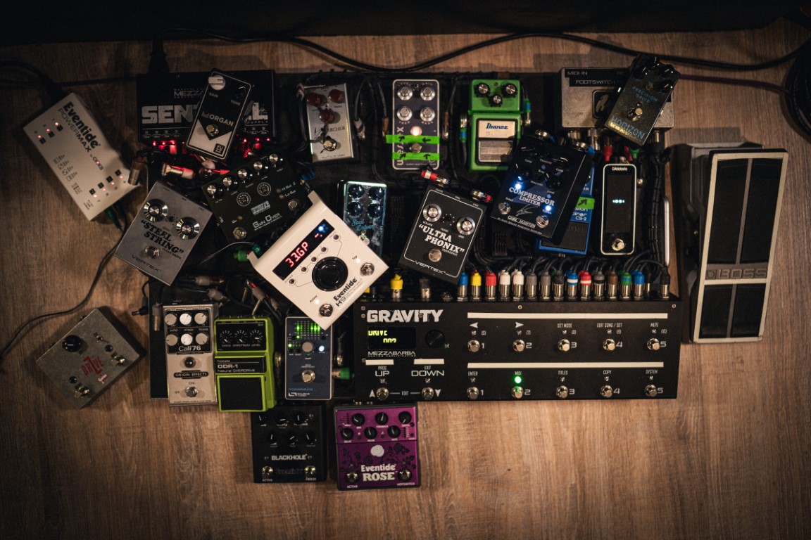 Ecco, un’altra cosa che faccio è spesso registrare gli arpeggi sia in versione plettro che dita. Questo perchè magari in fase di produzione potrebbe servire quello stesso arpeggio più “definito” e presente, con più attacco per via di particolari drums, o viceversa, magari per un breakdown dove il plettro sarebbe stato eccessivamente diretto.