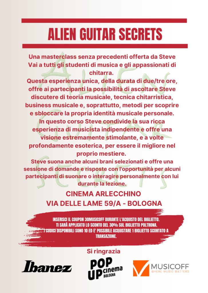 Il 19 maggio il guitar hero americano vi aspetta al Pop Up Cinema Arlecchino in via delle Lame a Bologna per la sua masterclass senza precedenti rivolta a tutti gli studenti di musica e gli appassionati di chitarra, un evento straordinario che è stato organizzato anche per celebrare i 60 anni del noto negozio di strumenti musicali Sergio Tomassone, assoluto punto di riferimento per i chitarristi italiani e non solo.