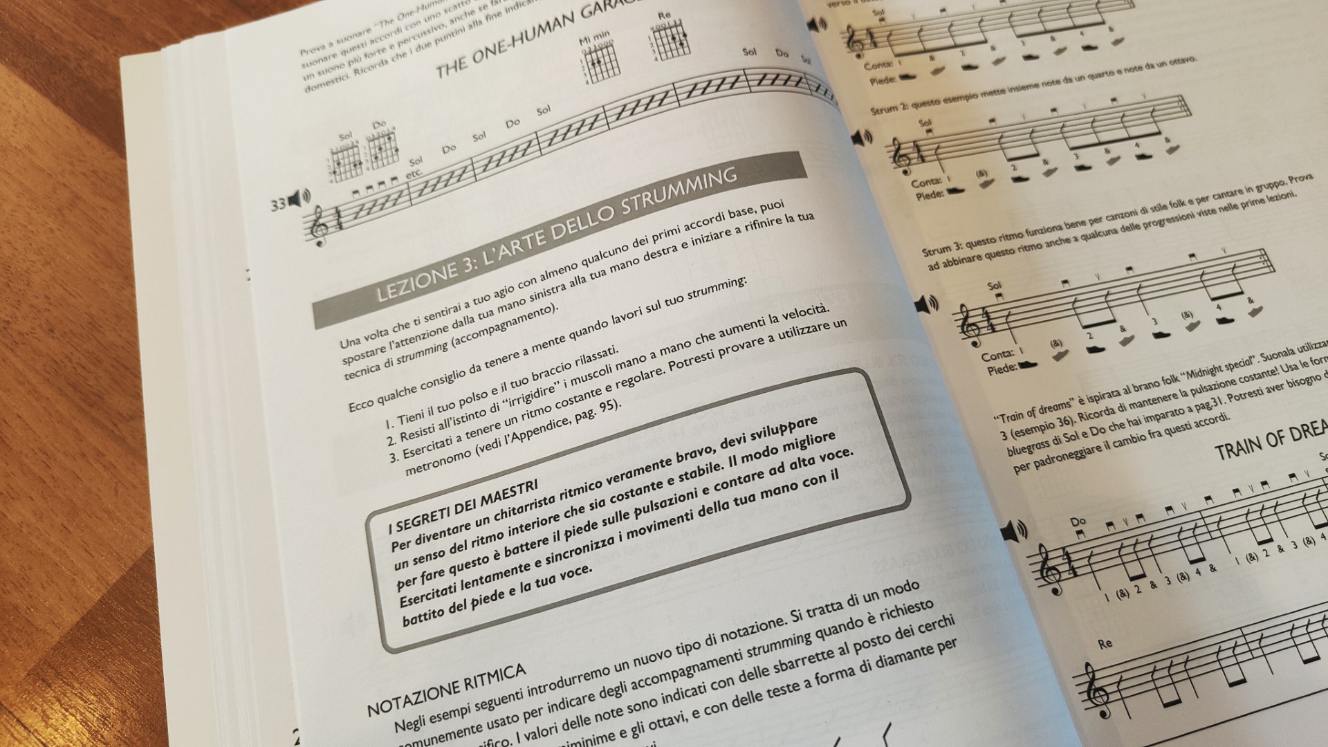 Questo manuale copre una vasta gamma di argomenti, partendo dalle basi come imparare a imbracciare la chitarra, a suonare con il plettro, a tenere il tempo e a leggere la musica.