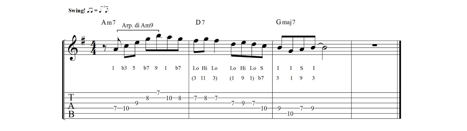 Esempio 3 – Variazione Lo-Hi-Lo sul IIm7