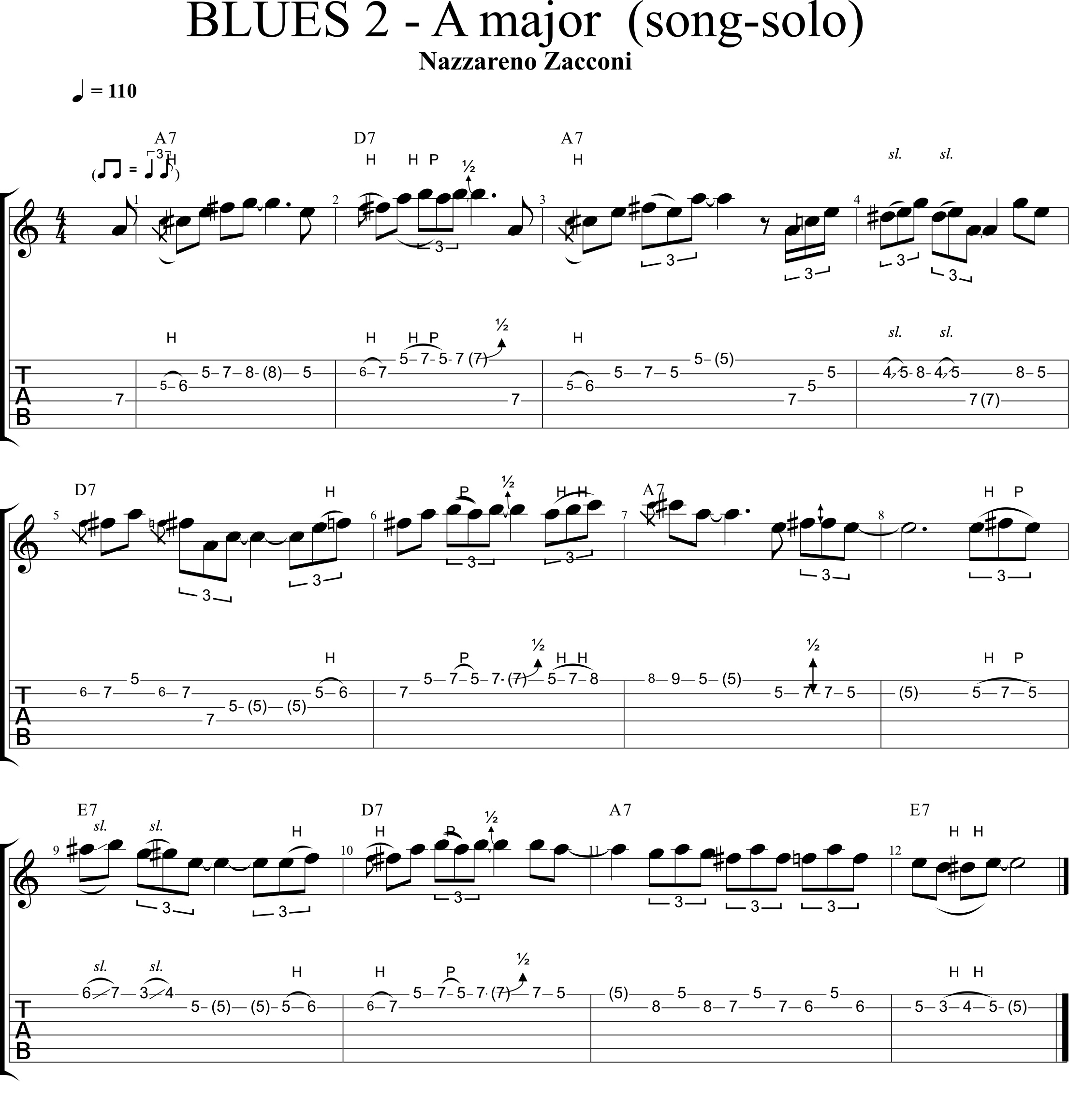Nel solo presente nell’audio ho cercato di combinare questi elementi in modo da rendere comprensibile quanto detto, ma ovviamente le possibilità sono davvero innumerevoli e seguendo queste poche indicazioni sarà possibile migliorare molto il proprio linguaggio blues.