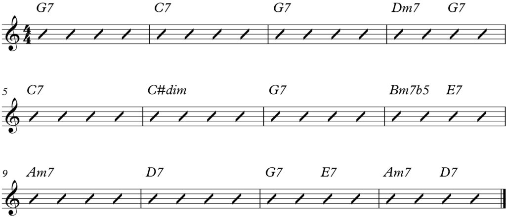 Vediamo prima una delle sue strutture tipiche in ambito jazzistico in G.