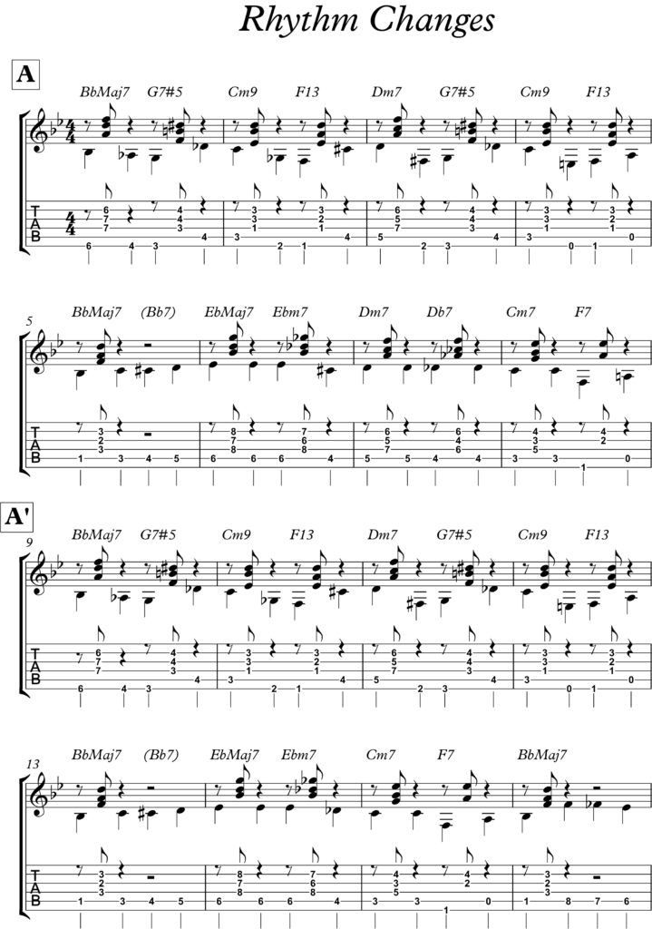 Ora siamo pronti per esaminare la struttura del Rhythm Changes per poi vederne l’applicazione del walking bass.