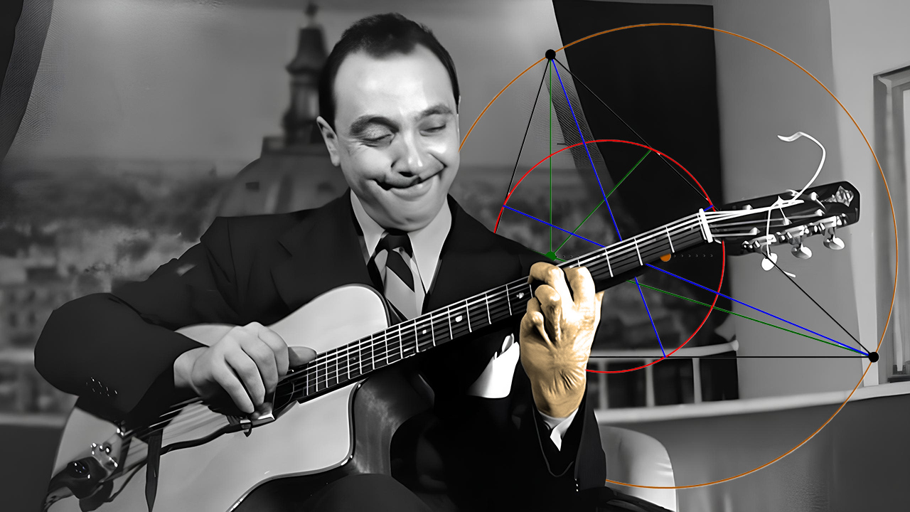 Una delle intuizioni più affascinanti illustrate da Viglione riguarda la natura “geometrica” del linguaggio di Django. L’impossibilità di usare quattro dita porta il chitarrista a pensare in forme essenziali: triadi, cromatismi brevi, spostamenti simmetrici, ripetizioni per coppie di corde.