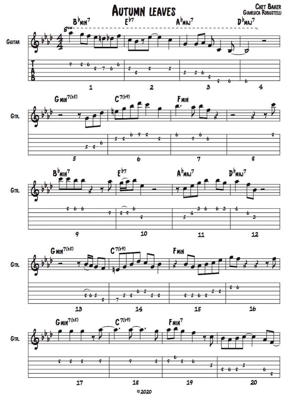 Per esempio troviamo un uso molto corretto dei cromatismi nella prima misura e l’utilizzo di suoni che vanno a colorare l’accordo, oltre le triadi, come le seste o le settime maggiori, sul quale si trova Chet durante il cambio d’accordo.
