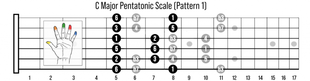 Il punto di partenza, quindi, è semplice quanto efficace: partendo dalla nota tonica (primo grado della scala), nel suo esempio il Do, viene immaginata una linea dell’equatore che attraversa orizzontalmente il manico (in pratica, il barrè).