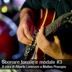L’errore più tipico in questo caso è pensare solamente alla scala di D maggiore tralasciando le note degli accordi. Teoricamente non è scorretto ma è sicuramente preferibile pensare in maniera modale. I punti forti a livello sonoro sono gli accordi che si susseguono quindi il G e il A con i rispettivi chord tones. Sarebbe preferibile pensare G lidio quindi o al massimo G lidio e A misolidio abbinando ad ogni accordo il suo modo.Esempio3: Cm|Ebm|Cm|EbmQuest’ultimo esempio non rientra nella prospettiva tonale. Non esiste infatti una tonalità che contenga entrambi gli accordi. Pertanto potremmo considerarli, secondo la prospettiva modale, a nostro piacimento (ad es. C dorico e Eb frigio, C eolio e Eb dorico, etc…). Ci sono moltissimi casi di commistione tra le due prospettive e prima di provare a mischiarle è bene aver assimilato la sonorità e la relazione scala-accordo per ogni singolo modo.Non ha senso una scala dorica su un accordo maggiore o una scala eolia su un accordo maggiore. Può aver senso creare dei passaggi modali su una progressione di accordi interamente o parzialmente tonale. Ad esempio nella progressione usata nel primo esempio della prima parte (G|D|C|C) potremmo “sporcare” la sonorità usando un G lidio su G oppure un C misolidio su C.Speriamo di avervi dato qualche stimolo positivo per capire un po’ meglio come usare i modi. Per qualsiasi chiarimento o delucidazione vi invitiamo a commentare l’articolo sul forum.Alberto Lorenzini