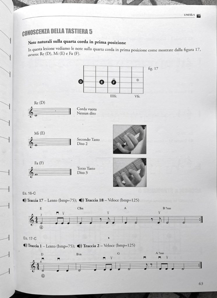 La lettura ritmica viene affrontata attraverso esercizi direttamente sulla chitarra, e nella sezione accordi e strumming si passa ai vari tipi di accompagnamento, compreso il comping jazzistico e vari tipi di arpeggio.