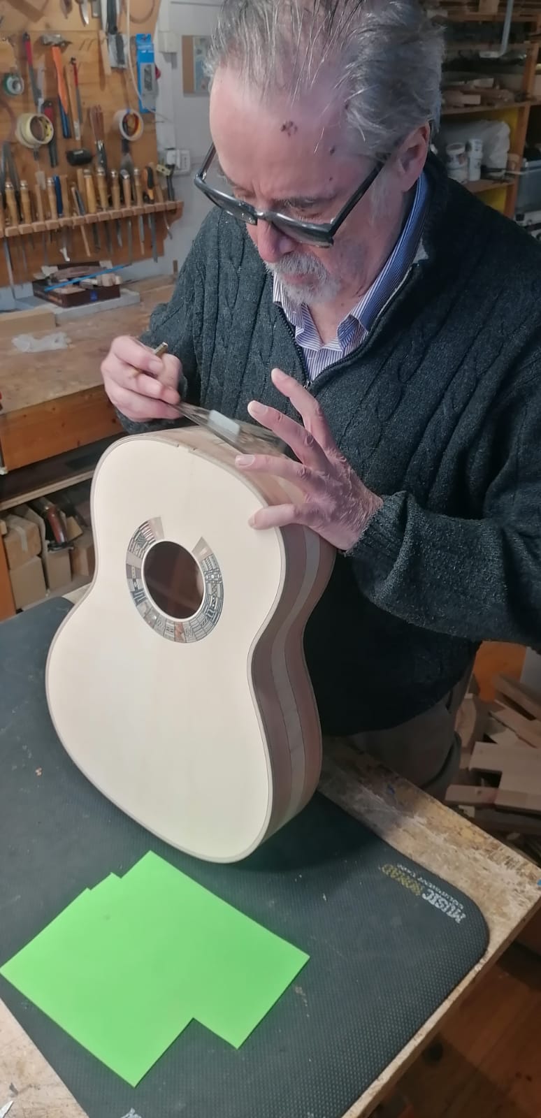 Il liutaio che segue l’istinto: tavole, essenze e sperimentazione
