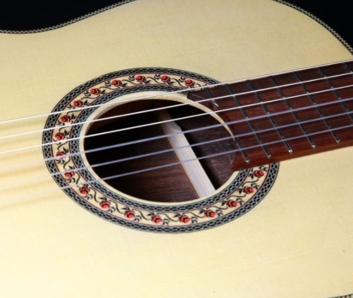 Nel 1978 nacque la mia prima chitarra, ispirata a un progetto Torres: era brutta, molto semplice, fatta di mani inesperte, ma è ancora qui, con la sua rosetta in mosaico approssimativo.