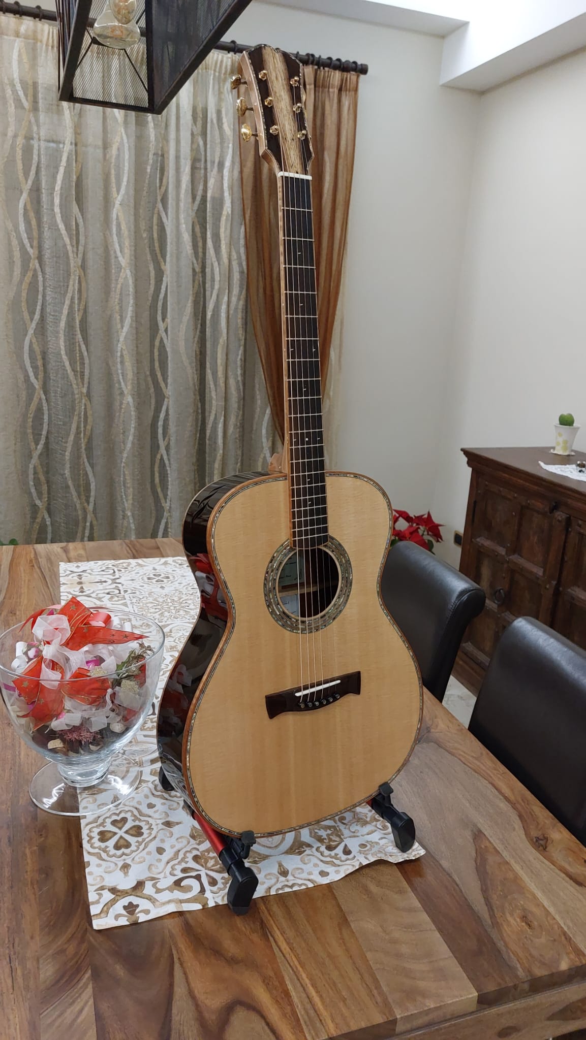 Un’altra medaglia importante è stata la partecipazione alla costruzione dell’Italica (qui sopra in foto, NdR), la chitarra realizzata da venti liutai per il Roma Expo Guitars. Fare parte di quel progetto collettivo, insieme a colleghi di altissimo livello, è stata una soddisfazione enorme.
