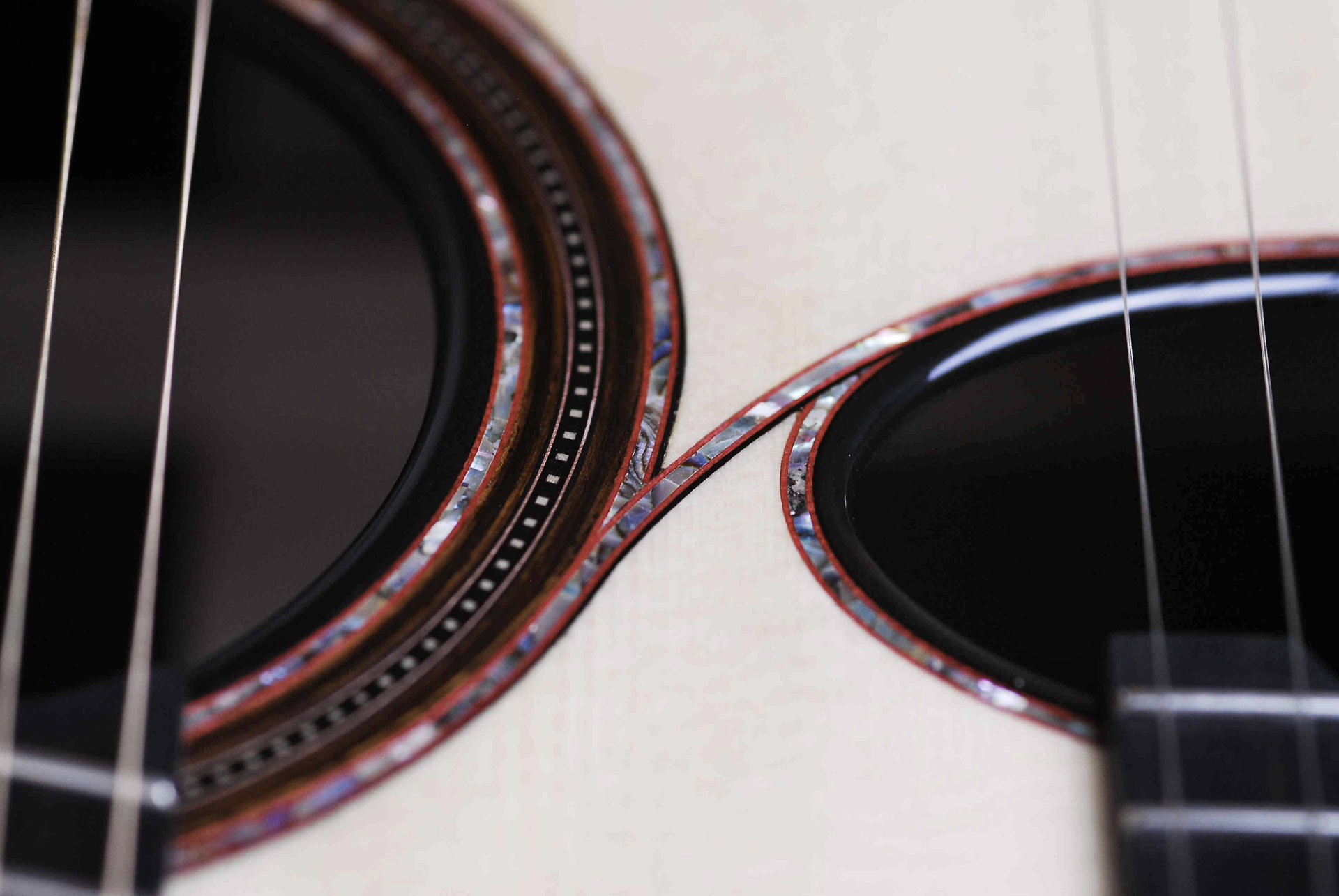 Il secondo è moderno con tavola armonica double top, in cui uso due strati che possono essere abete-abete, cedro-cedro oppure abete-cedro. Qui il suono diventa più potente ma mai aspro perché l’equilibrio è sempre il faro che mi guida.