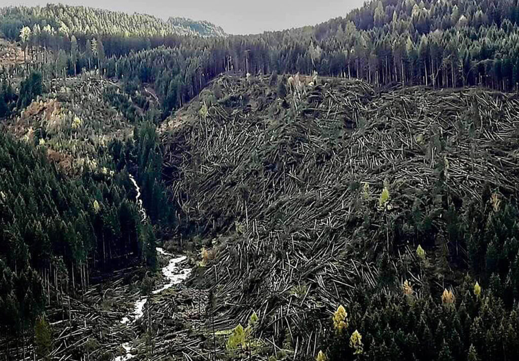 Nel 2018 una tempesta di forza e dimensioni straordinarie con venti fino a 200 Km orari ha abbattuto milioni di alberi, colpendo duramente tutta l’area.