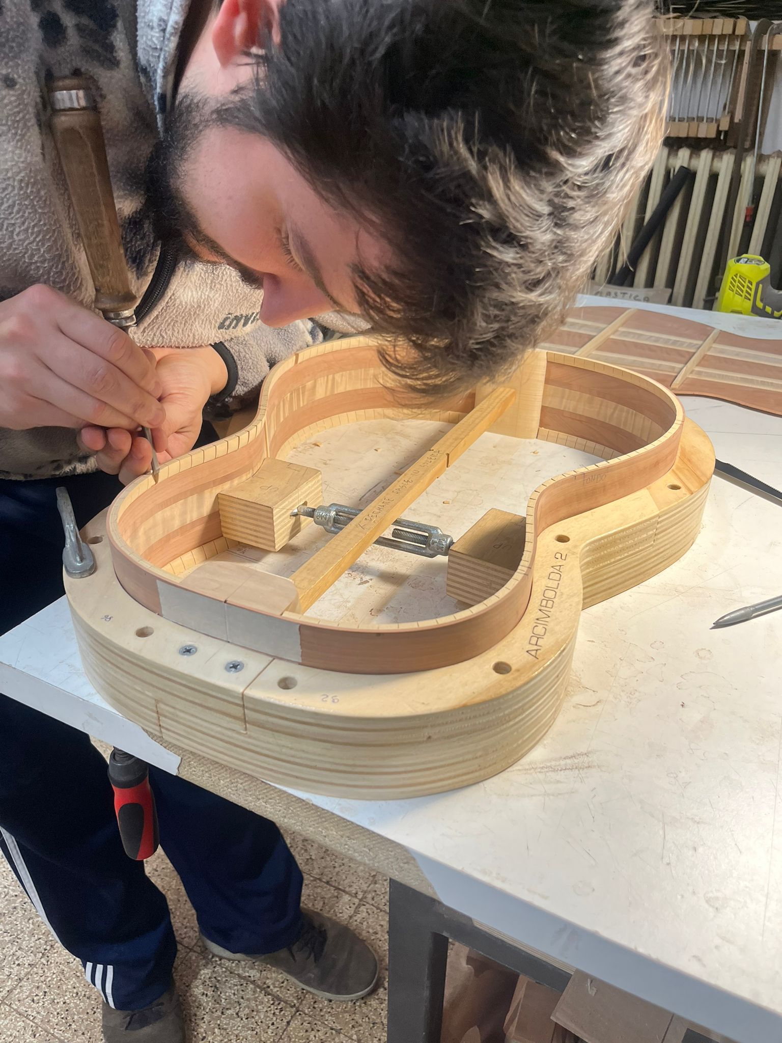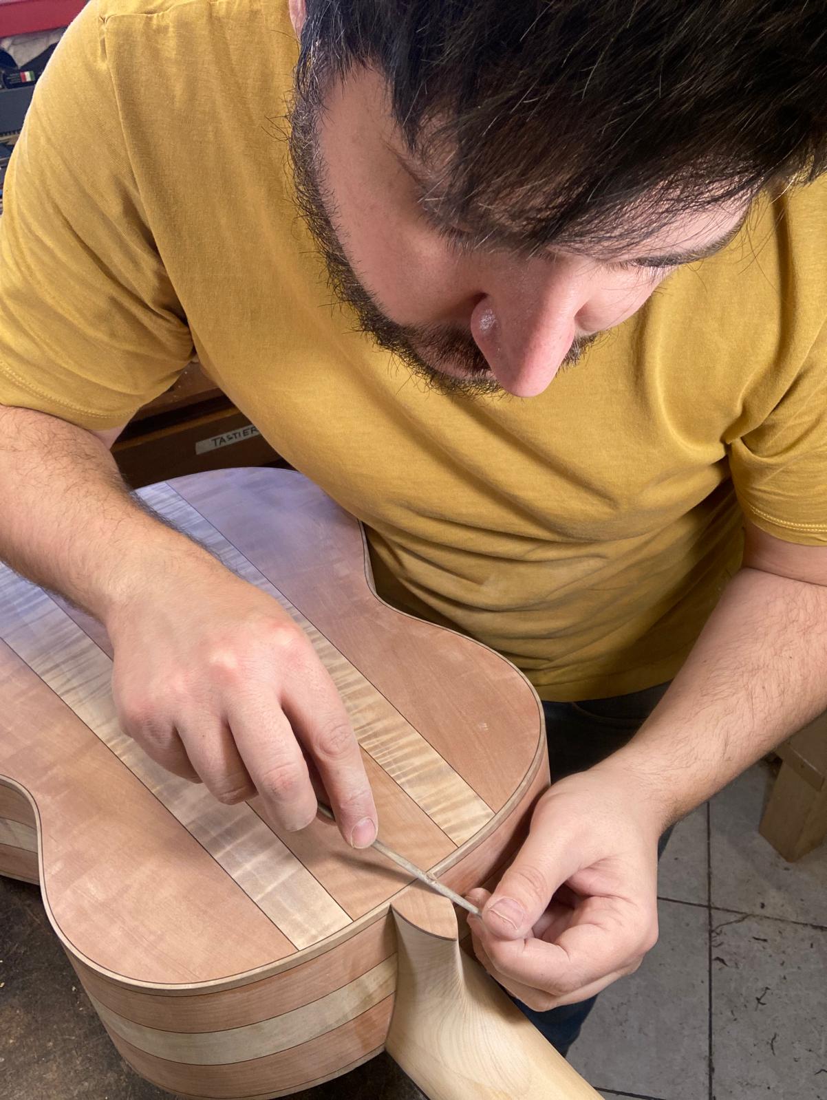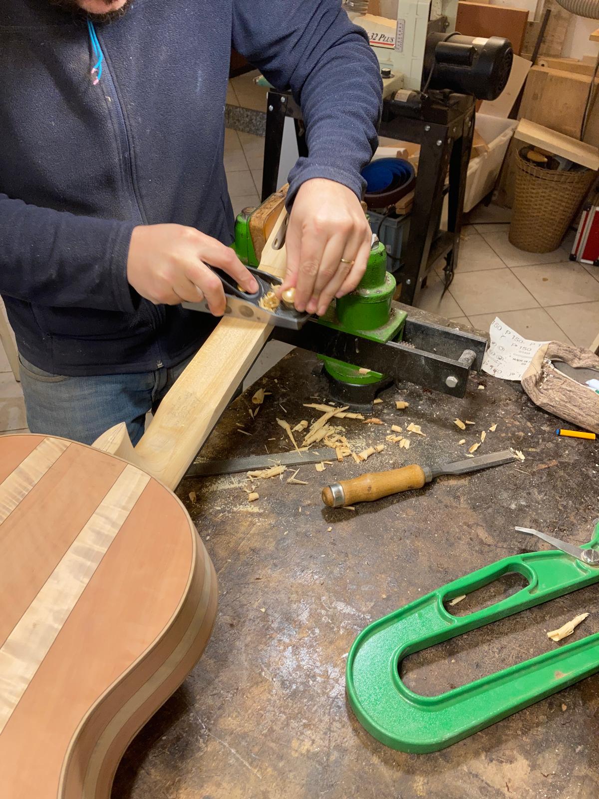 Serracini e Gambacorta: Incollaggio manico alla cassa e incollaggio tastiera (Roma)