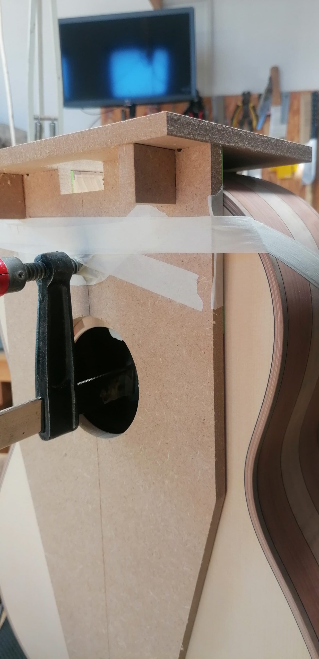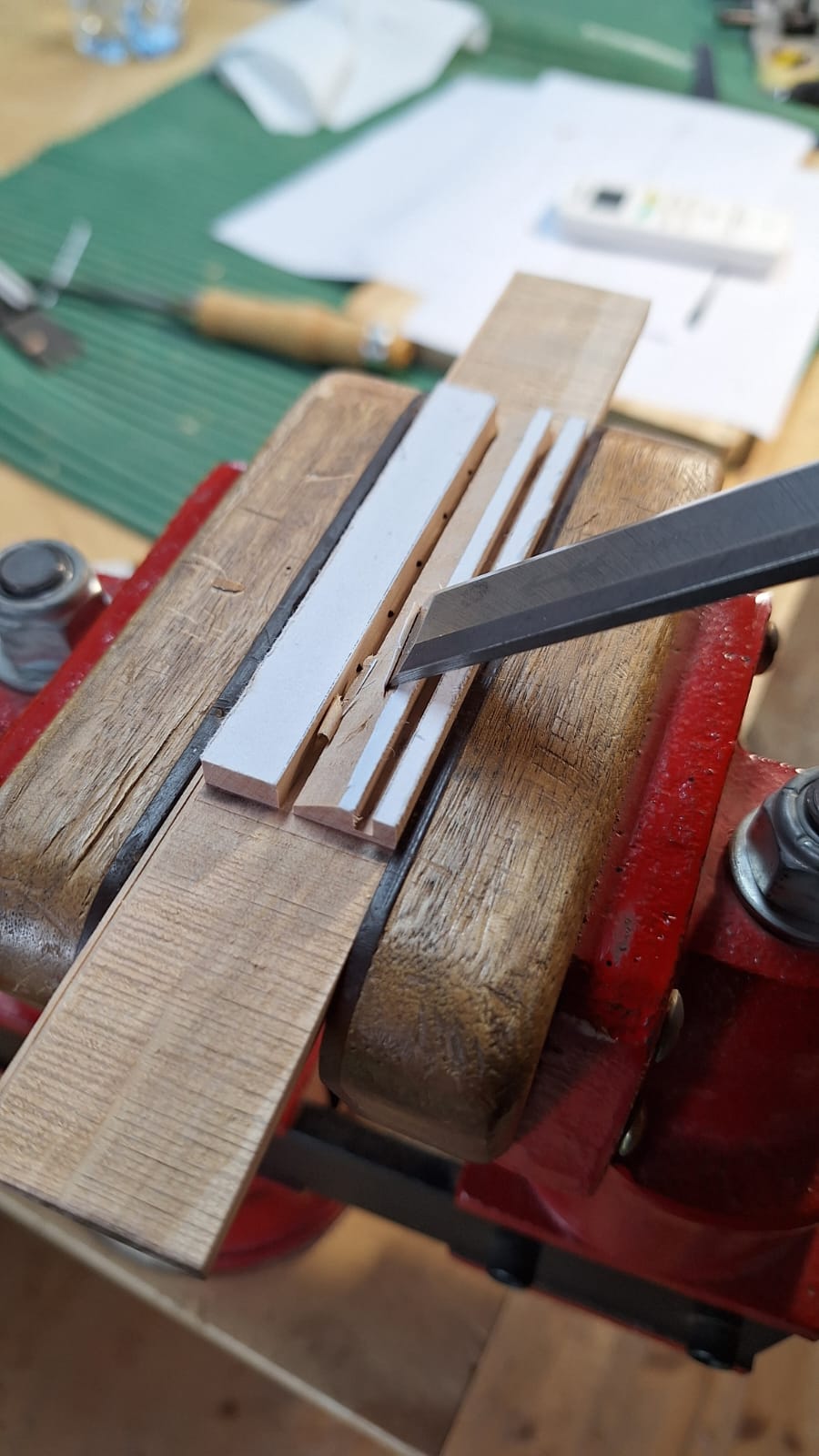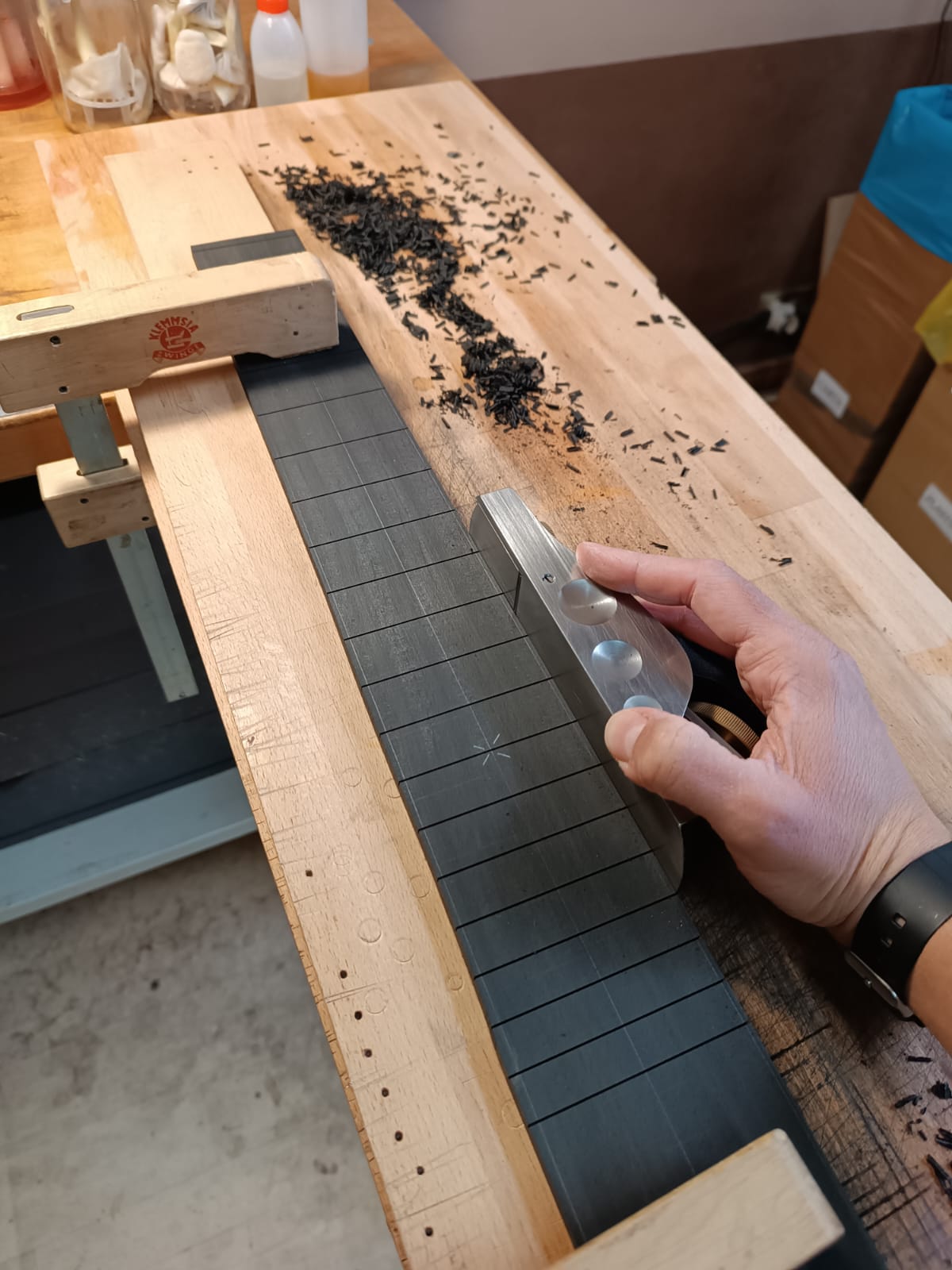 Serracini e Gambacorta: Incollaggio manico alla cassa e incollaggio tastiera (Roma)