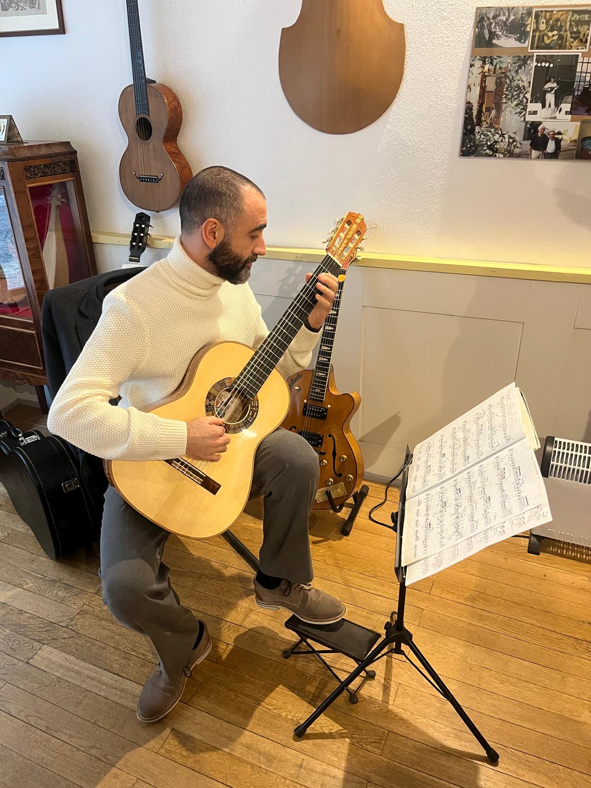 Successivamente lo strumento è stato consegnato a me qualche giorno prima del Roma Expo Guitars 2025 (era la metà di marzo) ed è stato esposto in una teca all’interno della manifestazione e suonato in concerto dallo stesso Gabriele, da Thibaut Garcia, da Zoe Barnett e da Alvaro Pierri.