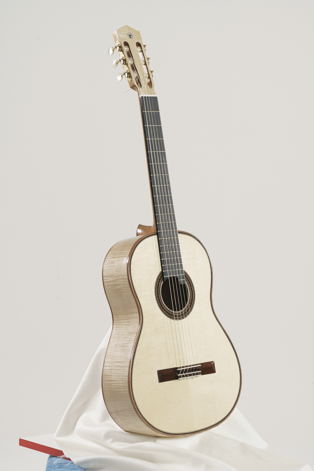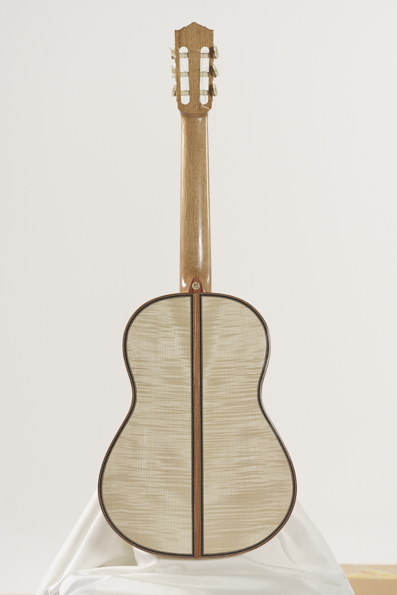 L’ultima chitarra progettata e costruita nel 2025 per un notissimo concertista italiano ha rappresentato una vera sfida nella progettazione perché la richiesta era di uno strumento in acero che avesse la tonalità calda e brillante caratteristica di quell’essenza con la potenza e le prestazioni di una chitarra in palissandro. Missione compiuta, applicando i miei studi di fisica del suono e dei materiali. Davvero con il legno si può fare qualsiasi cosa.