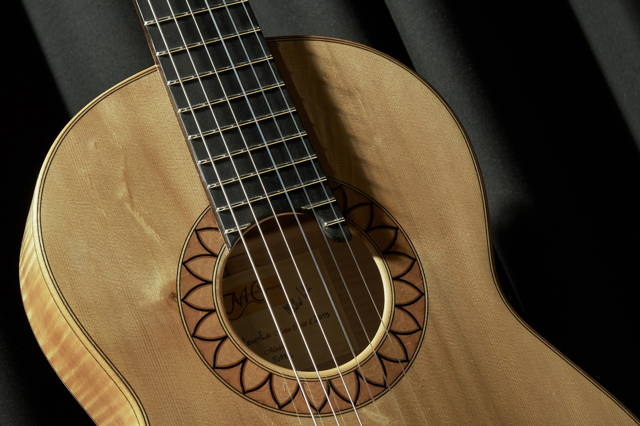 Negli anni ho imparato a guardare e ascoltare con grande attenzione gli strumenti storici e quelli di tanti validi colleghi. Correggersi, confermare o prendere ispirazione nella loro somma e nel tempo mi ha permesso di identificare il mio stile costruttivo, che rimane legato a tecniche e caratteristiche sonore del passato ma si evolve naturalmente e abbraccia tante novità che le chitarre moderne portano in termini acustici e musicali.