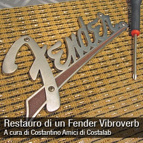 Ciao a tutti i Musicoffili, oggi vorrei raccontarvi di un lavoro fatto per un mio cliente al quale è capitata una brutta sventura, un episodio molto spiacevole all’interno di un’altro se possibile anche peggiore; infatti, al tizio è capitata la sventura di ricevere la “visita” dei ladri in casa, fatto di per se già piuttosto fastidioso, ma, durante il carico della refurtiva, il ladro ha pensato bene (secondo lui) di lasciare un ulteriore ricordo del suo passaggio, giocando a calciare i rigori con un Fender Vibrover 63 reissue di propietà del mio cliente.