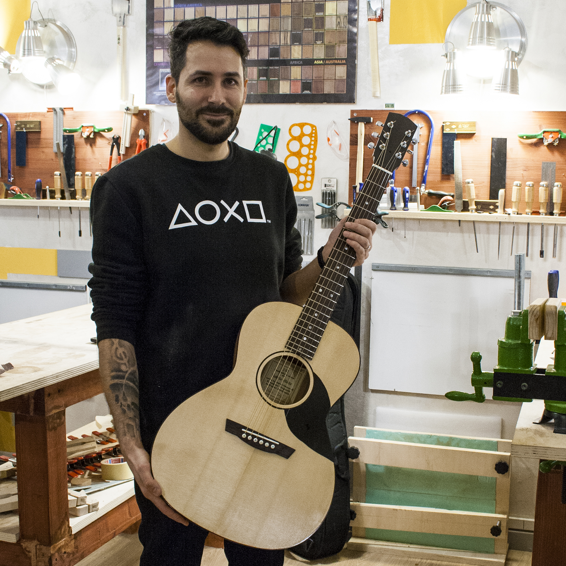 Nel 2010, per una grande passione per la chitarra che avevo sin da ragazzo, ho visitato la factory Taylor Guitars a El Cajon in California. Il profumo del legno e il fascino di quell’ambiente hanno acceso una scintilla: il desiderio di costruire.