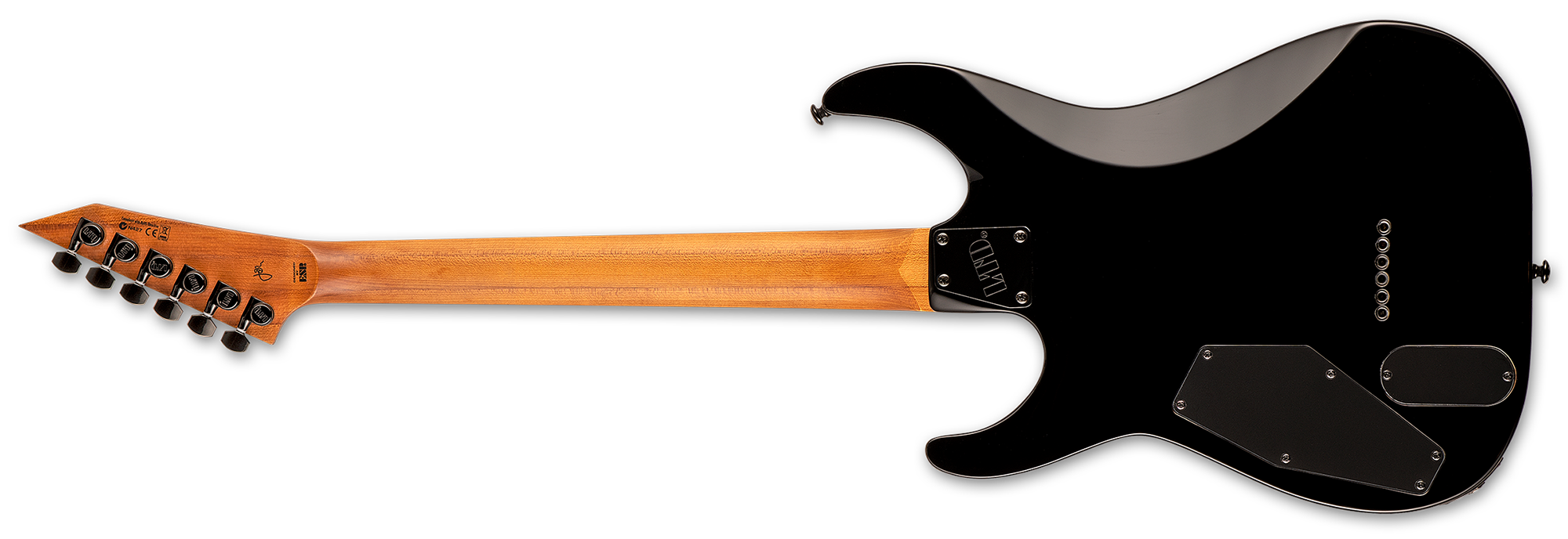 La LTD Josh Middleton Signature Series JM-II offre un corpo in ontano con top in acero quilted, un manico (avvitato) in tre pezzi in acero roasted con un profilo a forma di U extra-sottile.