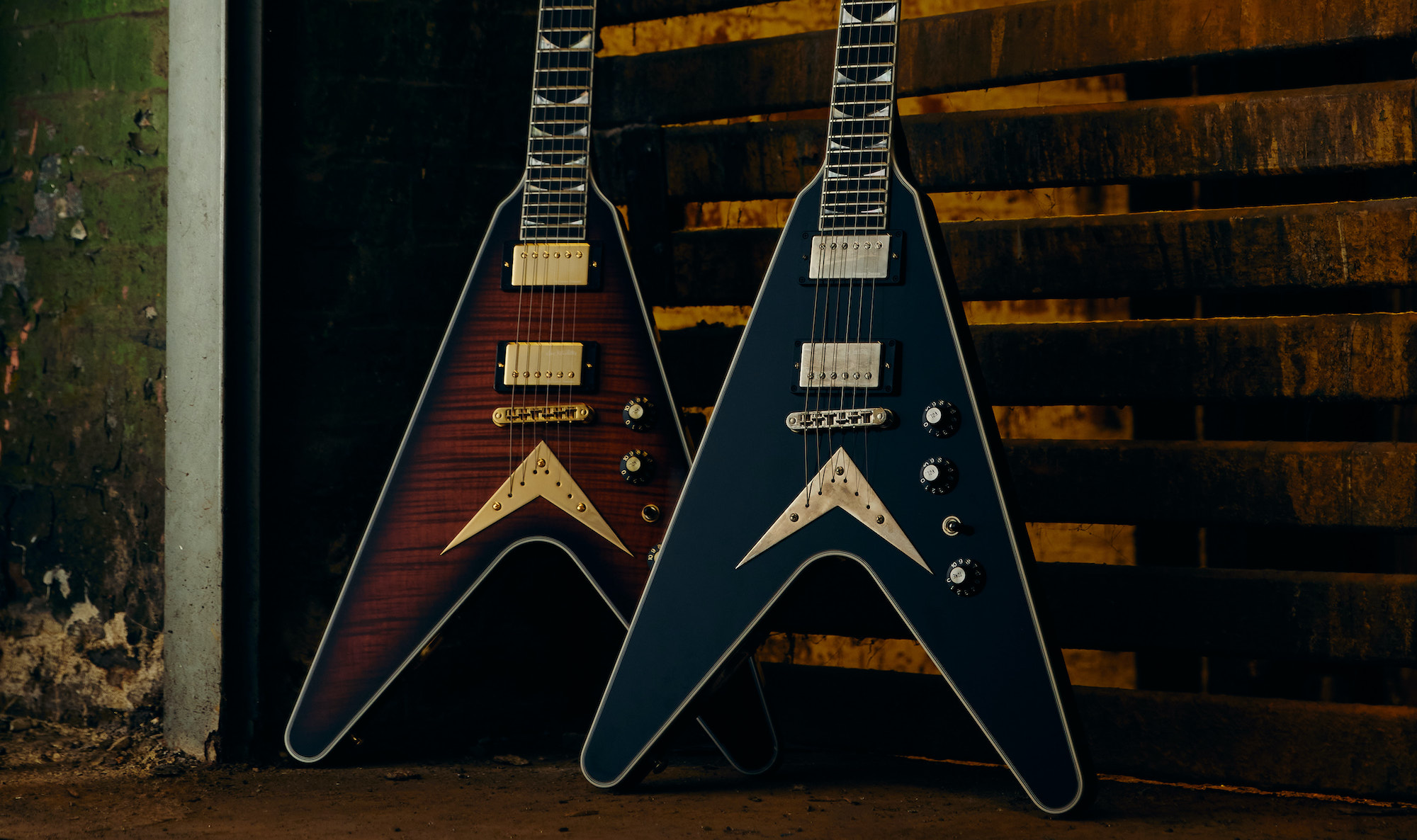 Le Dave Mustaine Flying V EXP sono state le prime nate della collezione, potenti modelli a 24 tasti in mogano potenziati dai pickup Seymour Duncan Thrash Factor firmati da Dave Mustaine.