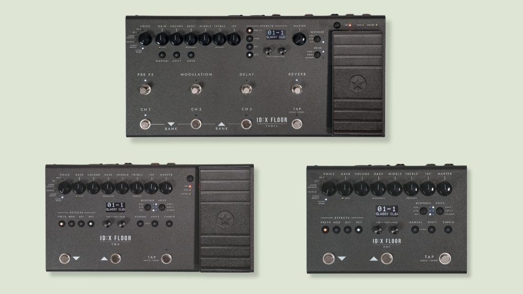 L’ID:X Floor One è la versione compatta: modellazione completa, oltre 35 effetti editabili dal pannello superiore, interfaccia audio USB-C, ingresso MIDI, uscite XLR, tuner, ingresso streaming e connettività per cuffie. Il layout di controllo è pensato per evitare la navigazione a menu, con un display OLED chiaro e 99 slot per patch.