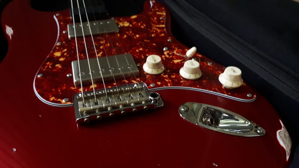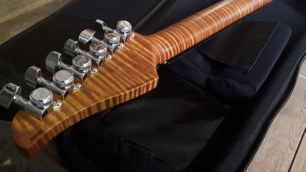 A livello di hardware troviamo un ottimo ponte vibrato Gotoh 510 a sei sellette e delle meccaniche autobloccanti marchiate Suhr.